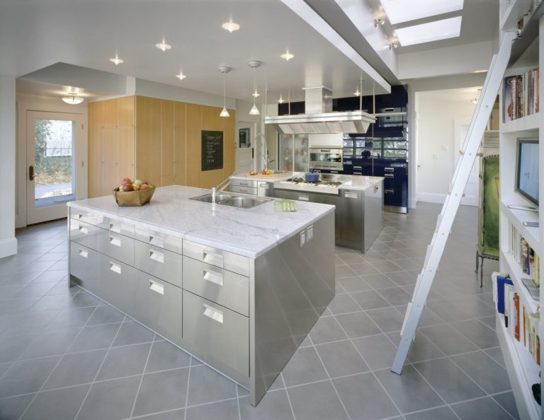 This Arlington family hired Feinmann to transform the small, dark, outdated kitchen in their beautiful 1870s Victorian home. The homeowners (one of them is a chef and both love to cook) asked the design team to create a sleek, modern chef’s kitchen – complete with high end cabinetry and professional-grade equipment – and do it in such a way that the contemporary kitchen would be harmonious with the rest of the home’s more traditional aesthetic. The new kitchen is light, spacious and highly functional, with generous windows and ample counter space. The design highlights the stainless steel and glossy blue ... read moreFood Pro Relishes New Kitchen