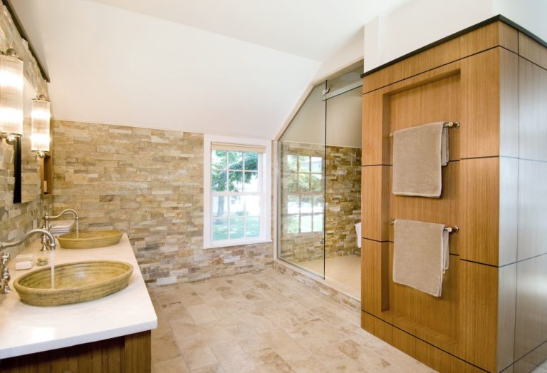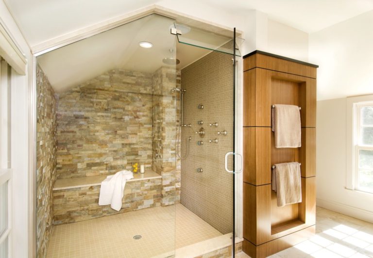 The owners of a stately 1903 home in Andover were looking to update their master bath in a contemporary style. Our clients traveled abroad extensively and asked that their master bath have a modern European look and a walk-in shower. Our design/build team delivered with contemporary fixtures and a curbless, frameless glass shower enclosure. The stunning Des Cerceaux Large mosaic with travertine and St. Laurent tiles give the impression the master bath is awash in bubbles. Radiant heat floors and elegant light fixtures transform this master bath. To fit the shower into the master bath, space was taken from a ... read moreReturn to Gracious