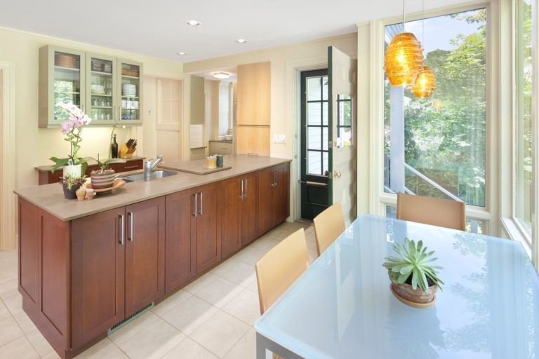 A Westwood family-owned an ill-defined Chateau-esque style house which was poorly laid out. The homeowners sought to make their house more attractive, more comfortable and more hospitable for themselves and for company. As things stood, they never entertained because their home felt too “clumsy” – especially the kitchen which, in a prime location, was cluttered and in need of updating. There was a wall dividing the kitchen and living room leaving the living room an awkward space, difficult to furnish and uncomfortable. The dining room had become an unofficial office and storage area. Additionally, there was a deck with sliding ... read moreBright New Kitchen Hub