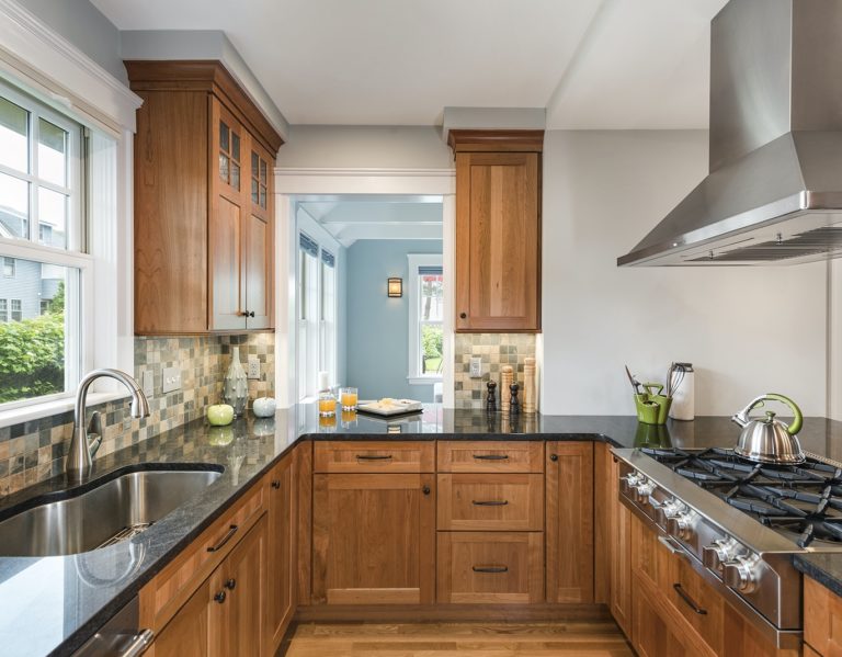 To achieve the homeowners’ goal of updating and expanding their Lexington kitchen to include a long-desired, large professional range, a small one-story addition was designed and built at the rear of their 1990s Colonial-style home. Existing windows were replaced with sliding French doors to the deck and additional windows were added along the rear wall giving the family the extensive views and access to their backyard they requested. While the floor plan essentially did not change, the Feinmann design team clarified the functionality by creating a distinct task and entertaining areas. White cabinetry by Showplace, new appliances, flooring and lighting ... read moreBungalow Delight