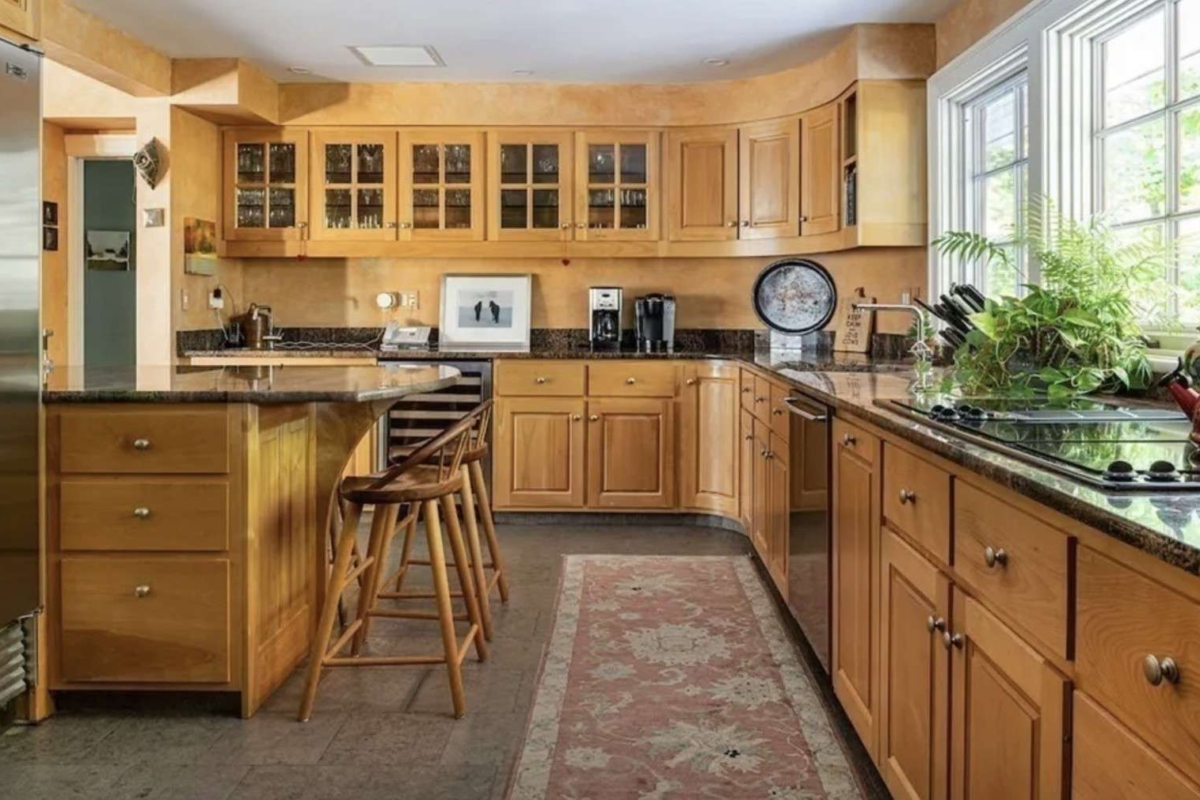 The kitchen renovation achieves a sleek, uncluttered look, making the home attractive and hospitable. The Westwood, MA, kitchen now boasts modern appliances, ample storage, and clean lines. Light wood cabinets and a contrasting dark countertop create a welcoming space. The redesign strategically opens the kitchen to stunning backyard views, inviting natural light and creating an ideal spot for entertainment. It transforms from “clumsy” to a comfortable, inviting hub for hosting friends and family.
