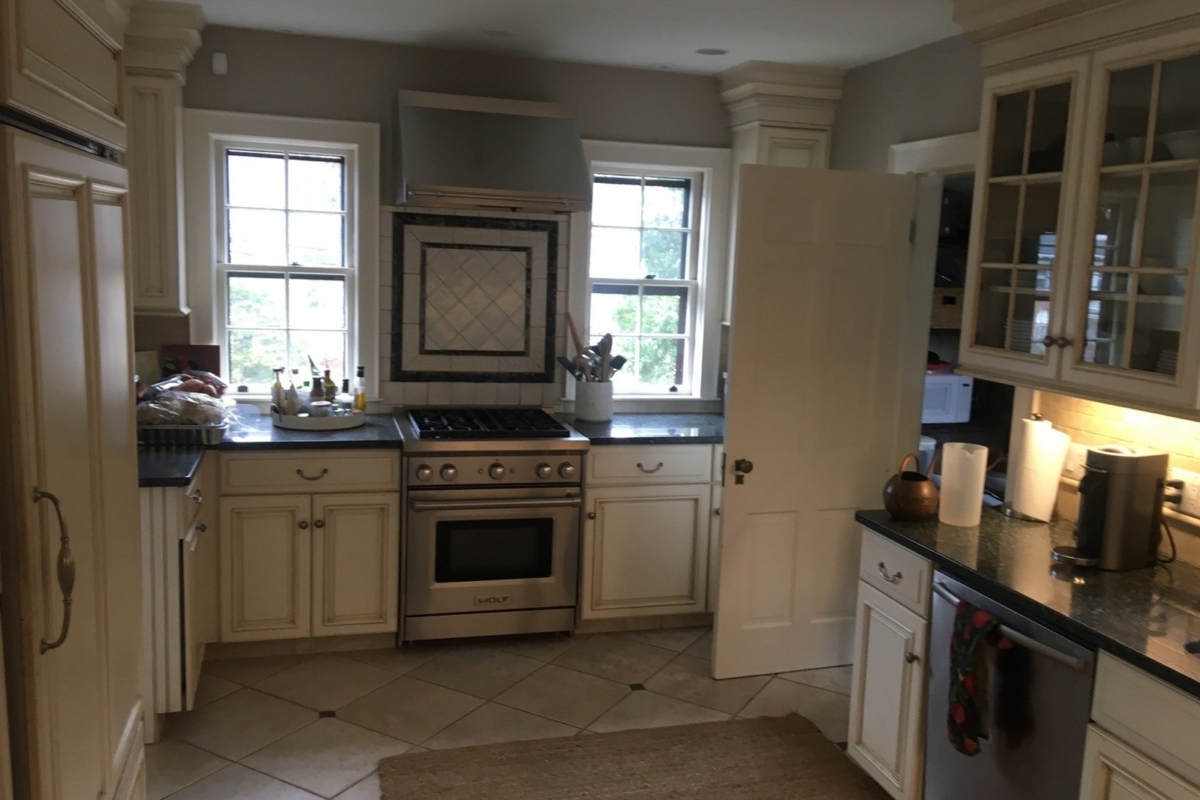 In Lexington, we reimagined a kitchen for a homeowner passionate about culinary teaching. The renovation included reducing the deck to enlarge the kitchen and making space for an island with a cooktop and a secondary sink. We also added cabinetry to accommodate the client’s needs for a kosher kitchen, providing space for various cookware and tableware sets.